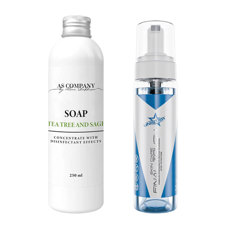 - Hautreinigung: Grüne Seifen, Schäume, Tücher und Handtücher, um die Haut vor und nach Verfahren sanft zu reinigen und vorzubereiten.