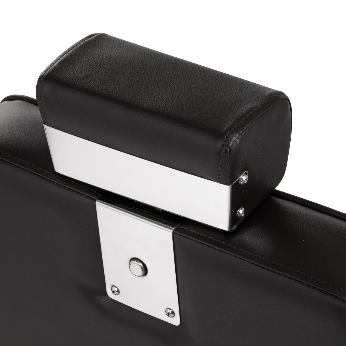 Ein effizienter hydraulischer Lift ermöglicht die freie Höhenverstellung des Sitzes zwischen 55-68 cm, selbst wenn der Kunde sitzt. Diese Funktion garantiert ergonomisches Arbeiten und erleichtert die Anpassung der Sitzhöhe an die Größe sowohl des Kunden als auch des Dienstleisters. Der Stuhl verfügt über eine neigbare Rückenlehne und eine verstellbare Fußstütze, die es ermöglichen, den Kunden in eine bequeme halb liegende Position zu bringen. Diese Konfiguration sorgt für besseren Zugang bei bestimmten Behandlungen. Zusätzlich bietet die 20 cm ausziehbare Kopfstütze hervorragenden Halt für den Kopf.