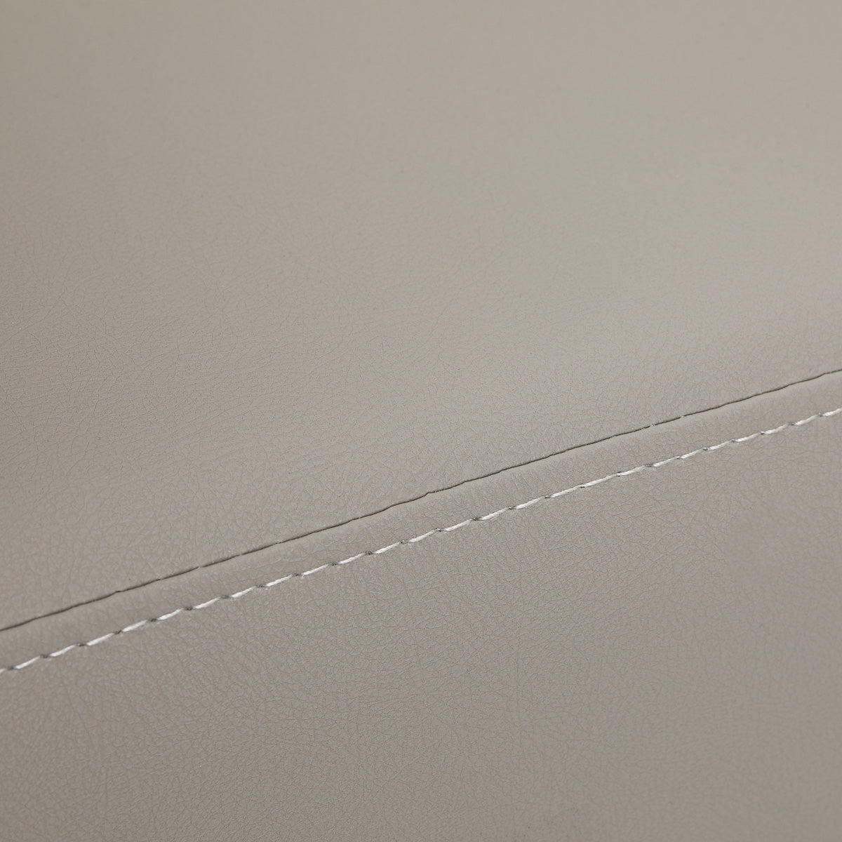 Der bequeme Sessel ist mit langlebigem und formbeständigem Schaumstoff gefüllt, der eine langfristige Nutzung, hohen Komfort und Bequemlichkeit auch bei vielen Stunden Behandlung gewährleistet. Die Polsterung besteht aus angenehm zu berührendem synthetischem Leder, und die Verwendung dieses Materials macht die Ausstattung feuchtigkeitsbeständig, langlebig und sehr leicht zu reinigen. Bezüge in Grautönen zusammen mit optisch interessanten Elementen verleihen ihm einen einzigartigen Charakter. Die Ausstattung zeichnet sich durch ein elegantes Design aus, das den Stuhl in vielen Friseursalon-Innenräumen großartig aussehen lässt.