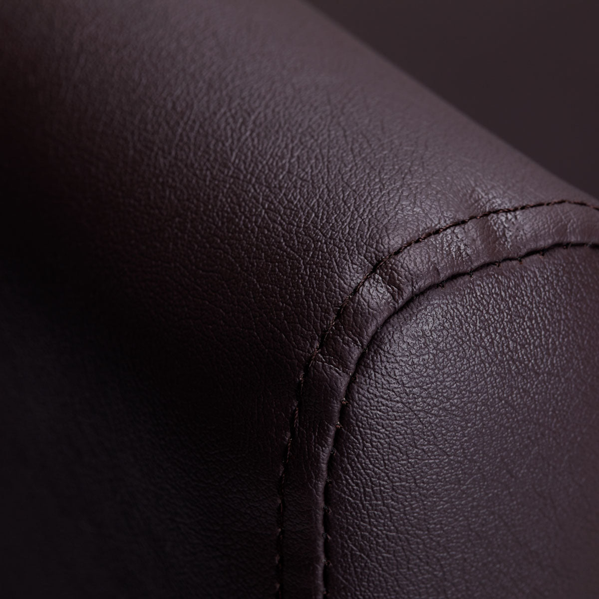 Die solide, quadratische Basis gewährleistet Stabilität während der Nutzung, während ihre polierte, glatte Oberfläche ein elegantes Erscheinungsbild verleiht. Der mit langlebigem, formbeständigem Schaum gefüllte und mit angenehm zu berührendem Kunstleder bezogene Sitz ist robust, feuchtigkeitsbeständig und leicht zu reinigen. Das elegante Braun betont das zeitlose Design, das harmonisch sowohl in moderne als auch traditionelle Friseursalons passt.