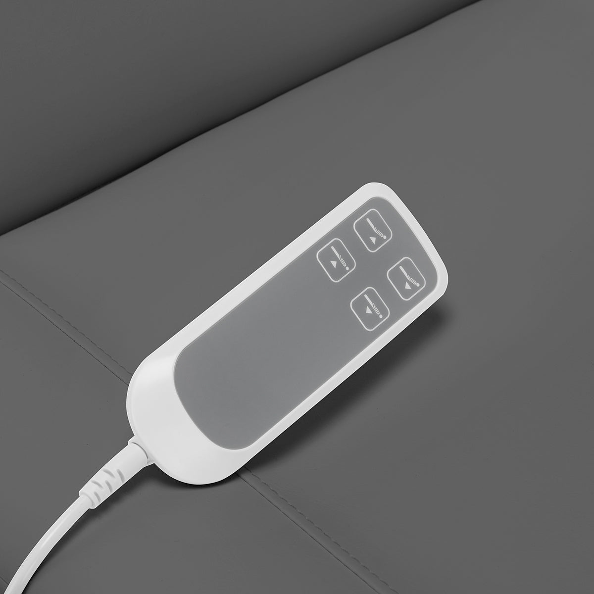 Mit einer benutzerfreundlichen Fernbedienung lässt sich der Stuhl sanft in 2 Ebenen verstellen – er verfügt über Höhen- und Rückenlehnenverstellung. Die Sitzhöhe kann von 61 cm bis 84 cm eingestellt werden, und bei vollständiger Ausdehnung erreicht der Stuhl eine Länge von 2 m. Diese Maße ermöglichen eine einfache Nutzung durch Personen unterschiedlicher Körpergrößen und erlauben es, den Stuhl an die aktuelle Behandlung und individuelle Bedürfnisse anzupassen, was sowohl den Komfort des Nutzers als auch der durchführenden Person beeinflusst. Die an beiden Seiten des Sitzes angebrachten Griffe ermöglichen es, die Fernbedienung aufzuhängen, sodass sie stets griffbereit ist.