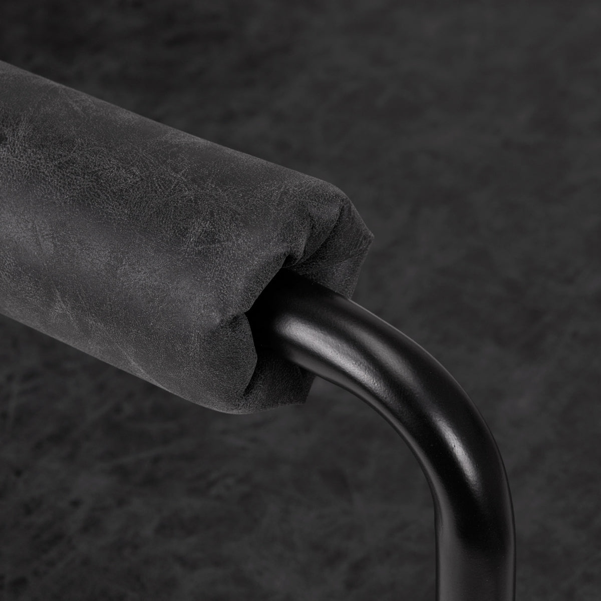 Das Möbelstück im Loft-Stil ist mit langlebigem, formbeständigem Schaum gefüllt, und die Polsterung besteht aus angenehm zu berührendem Kunstleder in Schwarztönen. Die verwendeten Materialien gewährleisten komfortable Nutzung der Möbel über lange Zeit und machen die Ausstattung feuchtigkeitsbeständig, langlebig und leicht zu reinigen. Metallische Elemente in Schwarztönen verleihen ihm einen Ausdruck roher Eleganz. Der moderne Gabbiano Katania Loft Friseurstuhl zeichnet sich durch ein minimalistisches Design aus, das ihm einen einzigartigen Charakter verleiht und den Stuhl in vielen Friseursalons großartig aussehen lässt.