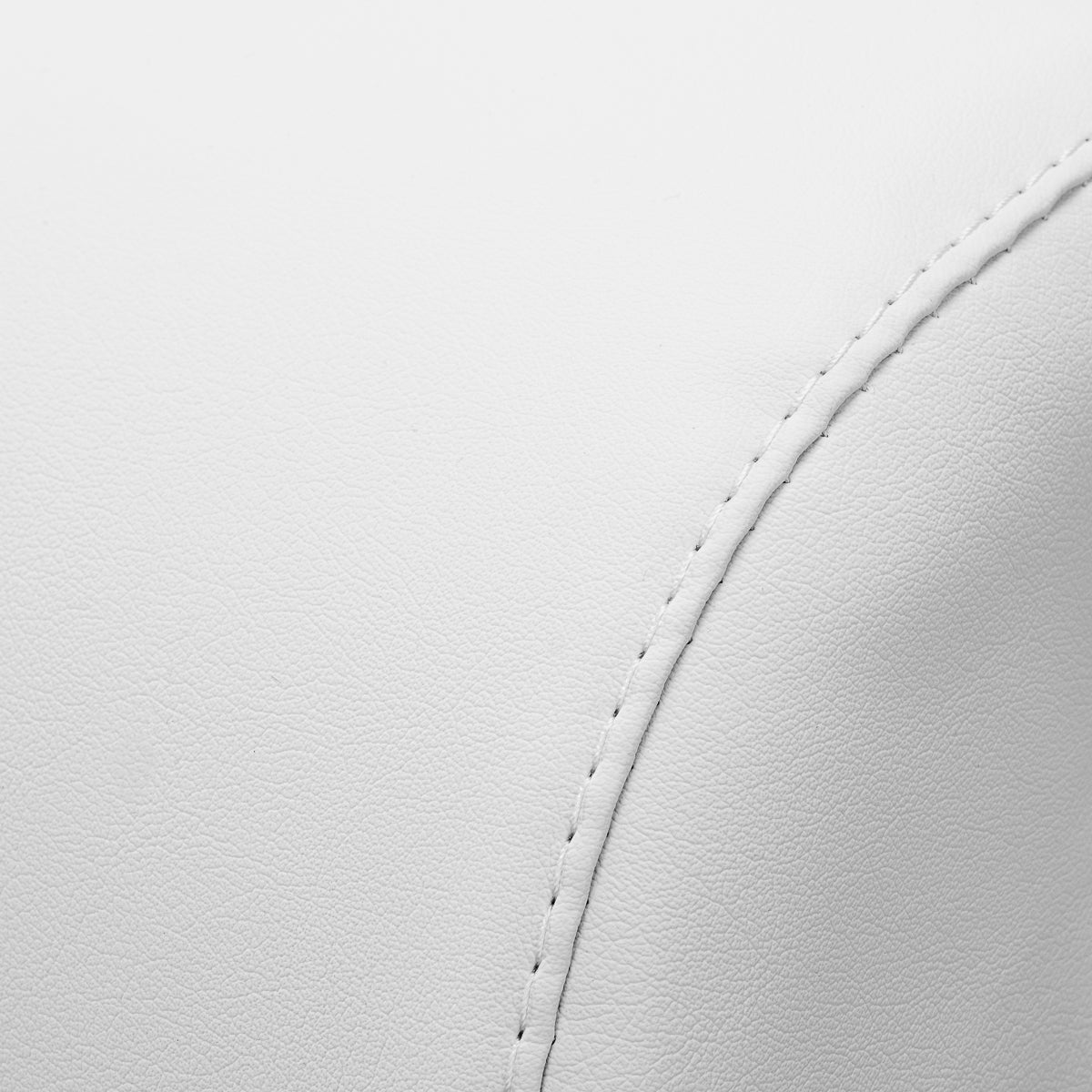 Die fünfzackige, solide Basis bietet außergewöhnliche Stabilität des Hockers, selbst bei intensiver Nutzung. Gummierte Rollen ermöglichen einfaches und sanftes Bewegen, ohne den Boden zu beschädigen. Der Stuhl zeichnet sich durch Langlebigkeit und Stabilität aus, und seine Polsterung aus hochwertigem Kunstleder in Weißtönen ist feuchtigkeitsbeständig und leicht zu reinigen, was den Nutzungskomfort weiter erhöht.
