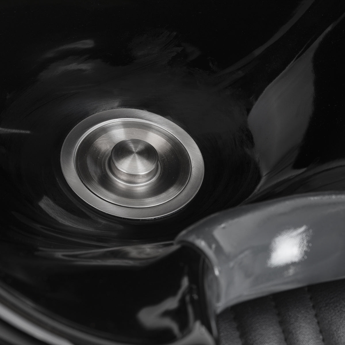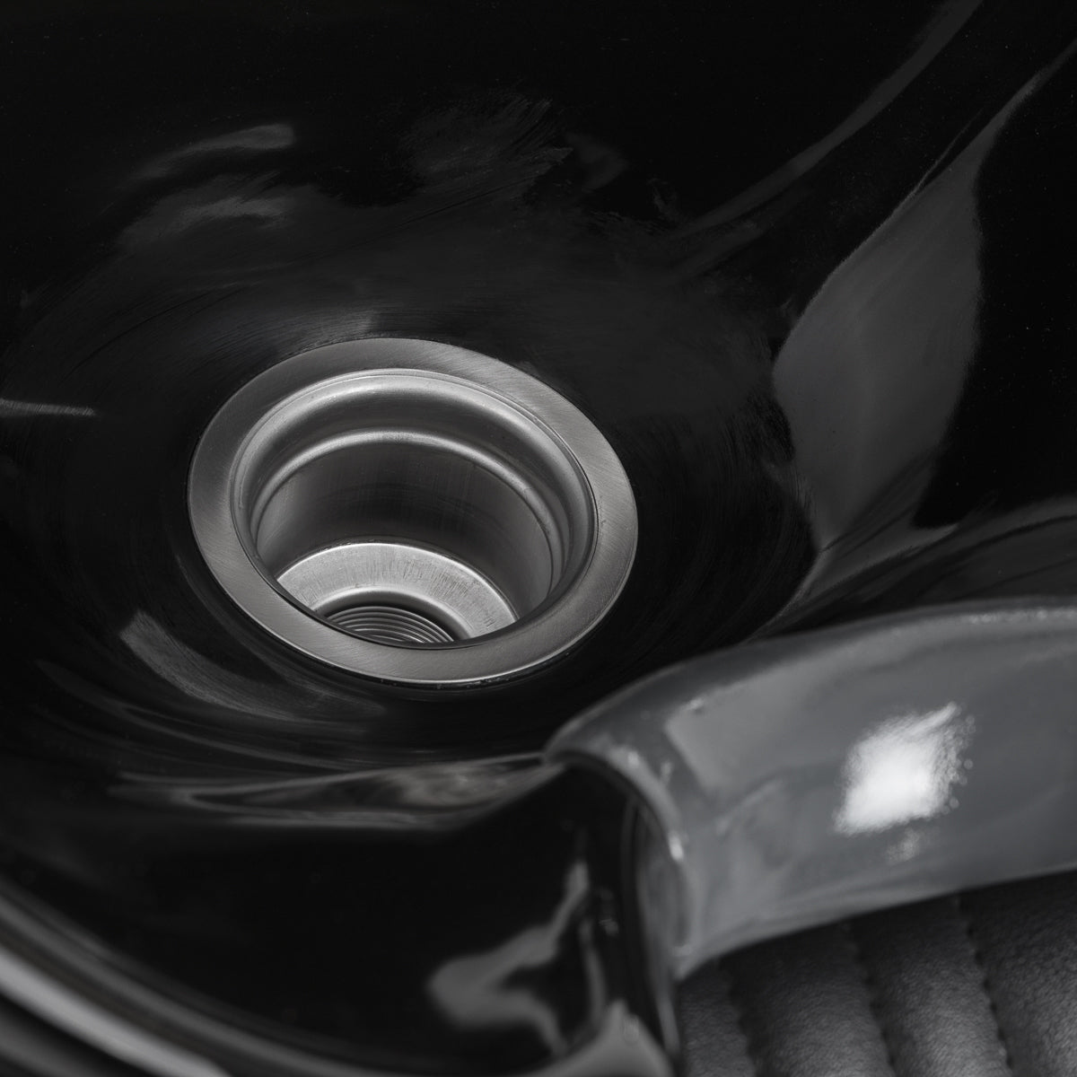 Das tiefe Keramikbecken in Schwarztönen verhindert übermäßiges Spritzen von Wasser und während der Behandlungen verwendeten Präparaten. Dies ermöglicht eine komfortable und effiziente Durchführung einer Vielzahl von Friseurdienstleistungen. Die Beweglichkeit des Beckens erleichtert es, den Winkel individuell anzupassen. Das verwendete Material macht das Becken langlebig, flecken- und kratzfest und sehr leicht zu reinigen. Das richtig profilierte Becken bietet optimale Unterstützung und Komfort beim Haarewaschen, und die bequeme Plastikabdeckung in Schwarztönen sorgt dafür, dass der Kunde nicht die Unannehmlichkeit der kalten Keramikoberfläche spürt.