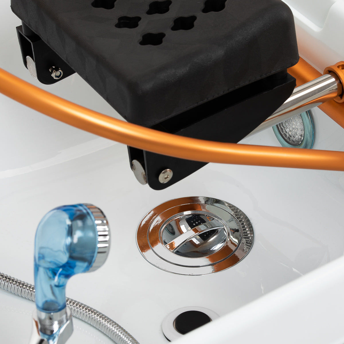 Der goldene Bogen mit verstellbarem Neigungswinkel, der für das Waterfall Head SPA entwickelt wurde, ist eine innovative Lösung, die umfassende Kopfhautpflege ermöglicht. Wasserstrahlen wirken als natürliche Massage, verbessern die Durchblutung, reduzieren Spannungen und Stress und lindern Beschwerden wie Kopfschmerzen und Nackensteifheit. Der präzise gesteuerte Wasserfluss fördert die Haarregeneration und spendet der Haut intensive Feuchtigkeit. Dank eines intelligenten geschlossenen Kreislaufsystems entnimmt der Bogen Wasser aus dem Becken und verwendet es wieder, wodurch eine kontinuierliche Wasser-Massage gewährleistet wird. Eine Kombination aus Technologie und Entspannung, die die Haargesundheit und das Wohlbefinden unterstützt.