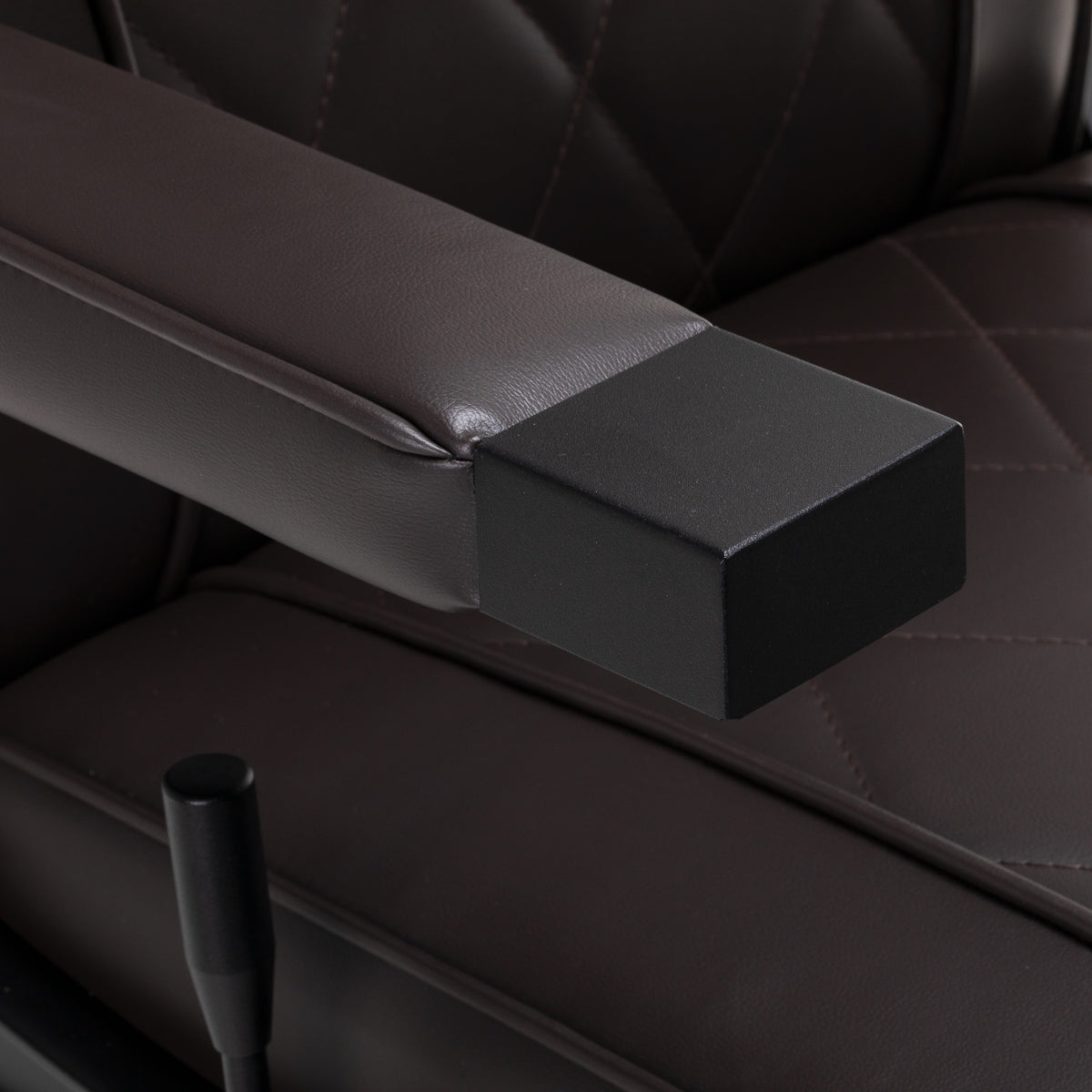 Die solide runde Basisstruktur des Stuhls sorgt für Stabilität und hervorragenden Benutzerkomfort. Die Sitzfüllung aus formbeständigem Schaumstoff und die Polsterung aus soft-touch Kunstleder mit matter Oberfläche garantieren langanhaltende Haltbarkeit und Komfort bei längerem Gebrauch. Stilvolle Nähte auf der Polsterung verleihen Charakter, inspiriert vom Automobildesign, was das elegante Erscheinungsbild unterstreicht. Diese Eigenschaft macht den Stuhl zudem feuchtigkeitsbeständig, langlebig und leicht zu reinigen. Die Polsterung in Brauntönen verleiht dem Stuhl einen einzigartigen Charakter, und sein minimalistischer Stil lässt ihn sich nahtlos in die Einrichtung jedes Barbershops einfügen.