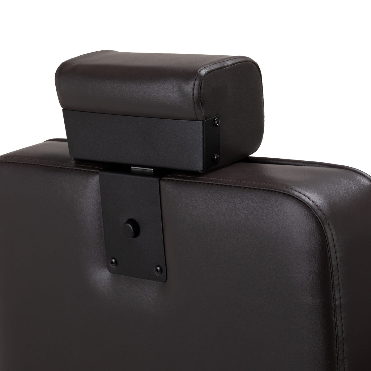 Ein effizienter hydraulischer Lift ermöglicht die freie Höhenverstellung des Sitzes zwischen 55-68 cm, selbst wenn der Kunde sitzt. Diese Funktion garantiert ergonomisches Arbeiten und erleichtert die Anpassung der Sitzhöhe an die Größe sowohl des Kunden als auch des Dienstleisters. Der Stuhl verfügt über eine neigbare Rückenlehne und eine verstellbare Fußstütze, die es ermöglichen, den Kunden in eine bequeme Halbliegeposition zu bringen. Diese Konfiguration sorgt für besseren Zugang bei bestimmten Behandlungen. Zusätzlich bietet die 20 cm ausziehbare Kopfstütze hervorragenden Halt für den Kopf.