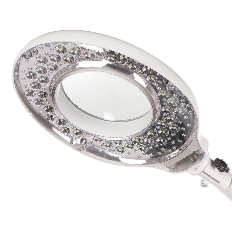 Leicht verschiebbare und einstellbare Vergrößerungslampe mit hochwertigem refraktivem Vergrößerungsglas und integriertem Beleuchtungssystem, die eine optimale Hautdiagnose ermöglicht. Der Lampenkopf ist an einem Ausleger befestigt, der die Einstellung auf eine bestimmte Entfernung und Höhe erleichtert. Erleichtert die Arbeit bei kosmetischen Behandlungen.
