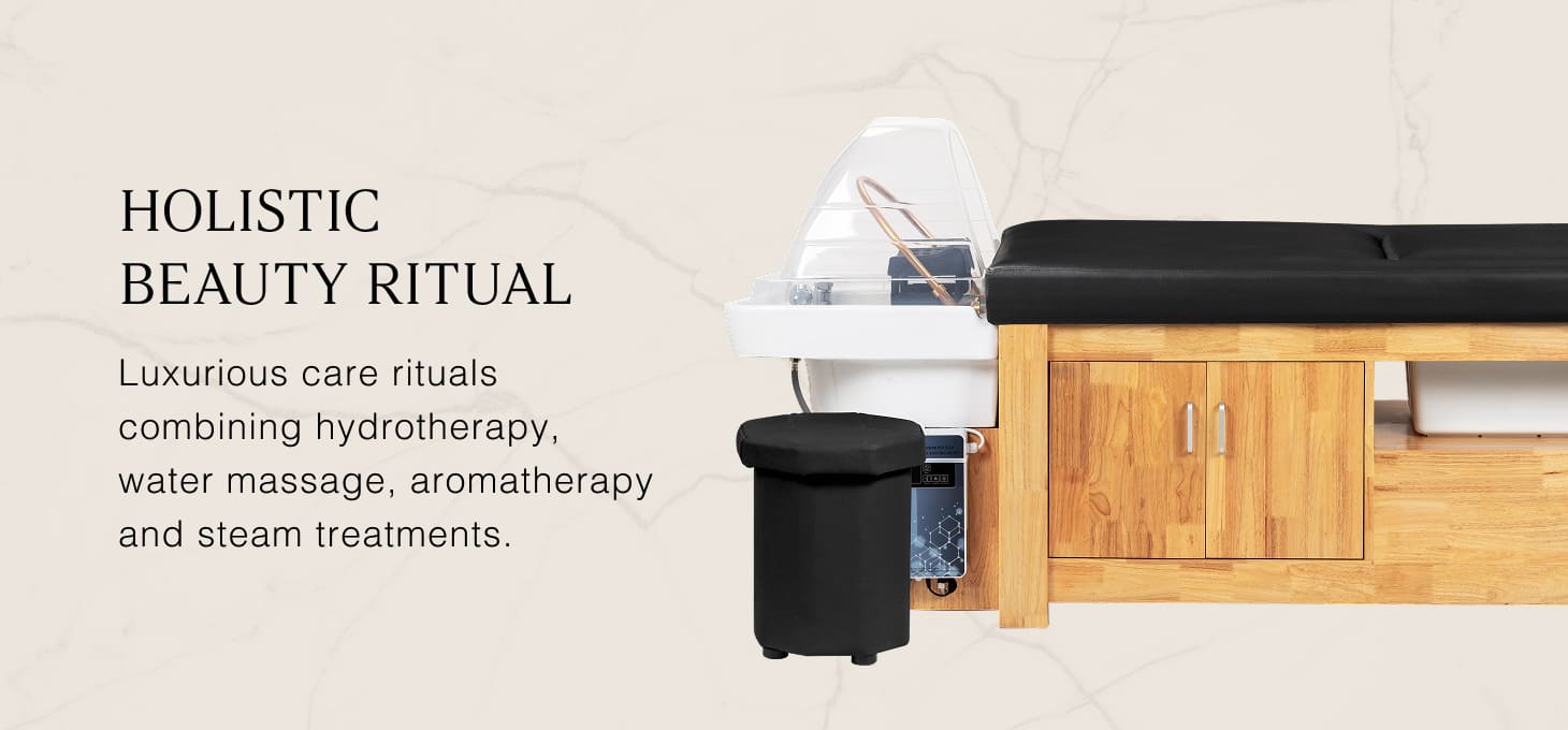 The elegant Gabbiano Head Spa Bali bed with integrated wash is an innovative solution for luxurious beauty and relaxation treatments. It is perfect for Japanese Head SPAs, hydrotherapy, water massage, aromatherapy, and steam therapy, providing a holistic experience. It also works well for body massages, offering versatile therapeutic and relaxing options. Advanced technology and ergonomic design not only provide unparalleled comfort for customers but also facilitate the work of beauty and wellness professionals. The combination of a natural wooden structure with soft black upholstery gives the whole thing an elegant look and guarantees comfort of use.
