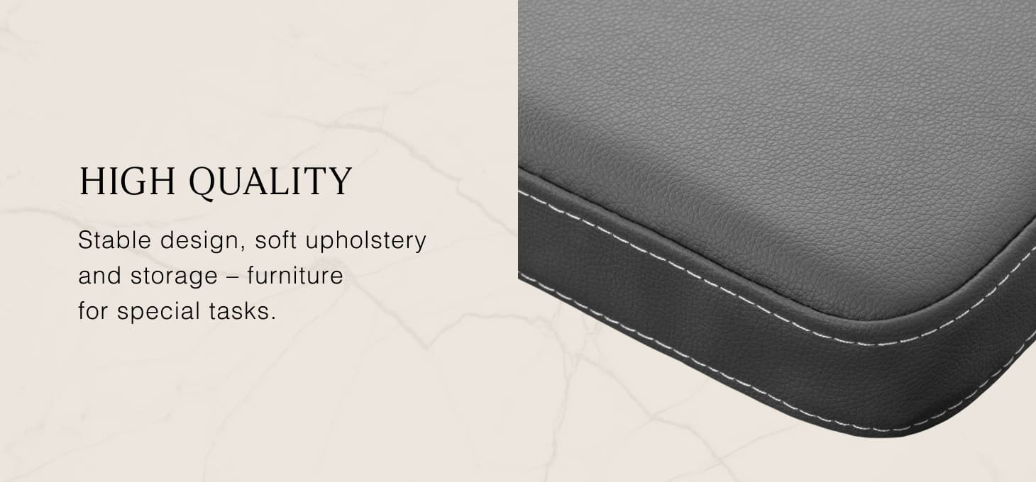 The Head Spa Bali bed is a harmonious combination of functionality and modern design. Its stable structure is reinforced by a solid frame finished with aesthetically pleasing wooden elements, which add warmth and elegance to the interior. The robust construction guarantees stability and durability for long-term use. The ergonomically profiled lounger surface is covered with soft synthetic leather in shades of elegant grey, ensuring maximum comfort during treatments and at the same time makes it easy to keep clean. A practical cabinet located under the lounger allows for convenient storage of cosmetics and accessories, ensuring all necessary products are always within reach. The combination of natural wood, soft synthetic leather and ergonomic design makes the Head Spa Bali a stylish and functional piece of furniture for hair salons, SPAs and wellness centres. It is designed to combine comfort of use with a timeless aesthetic.