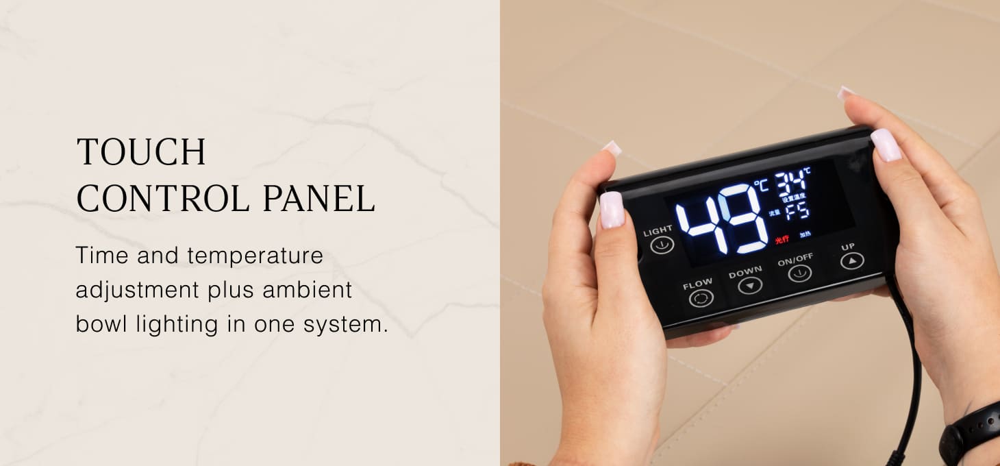 The intuitive touch panel allows for full control over treatment parameters and ease of use. It allows you to adjust the operating time and water temperature, as well as monitor their current values on a clear, easy-to-read display. Additionally, the panel allows you to activate the light therapy function, which illuminates the bowl, creating an atmosphere of relaxation and luxury. The set also includes a remote control, which allows you to conveniently control the steam therapy device from a distance.