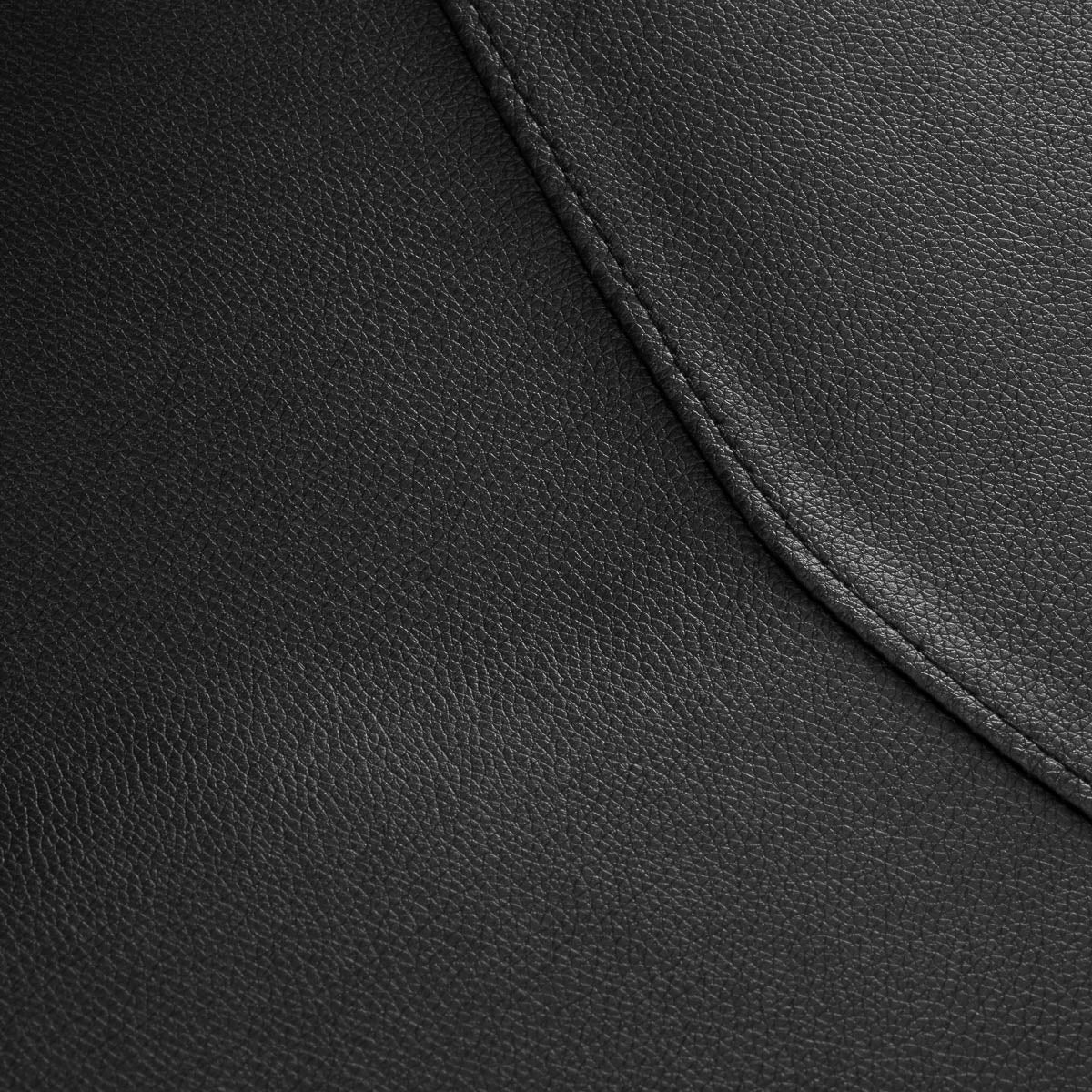 Der langlebige Körper und das synthetische Leder in Schwarztönen gewährleisten Feuchtigkeitsbeständigkeit, Stabilität und Langlebigkeit. Die runde Basis in Schwarztönen garantiert Stabilität und Haltbarkeit. Die stromlinienförmige obere Rückenlehne verleiht eine optische Leichtigkeit und betont den modernen Charakter des Stuhls, während die sorgfältigen Details die hohe Handwerksqualität demonstrieren. Die minimalistische schwarze Farbe kombiniert mit ästhetischen Nähten lässt den Stuhl nahtlos in verschiedene Salon-Innenstile einfügen und verleiht einen eleganten und modernen Akzent