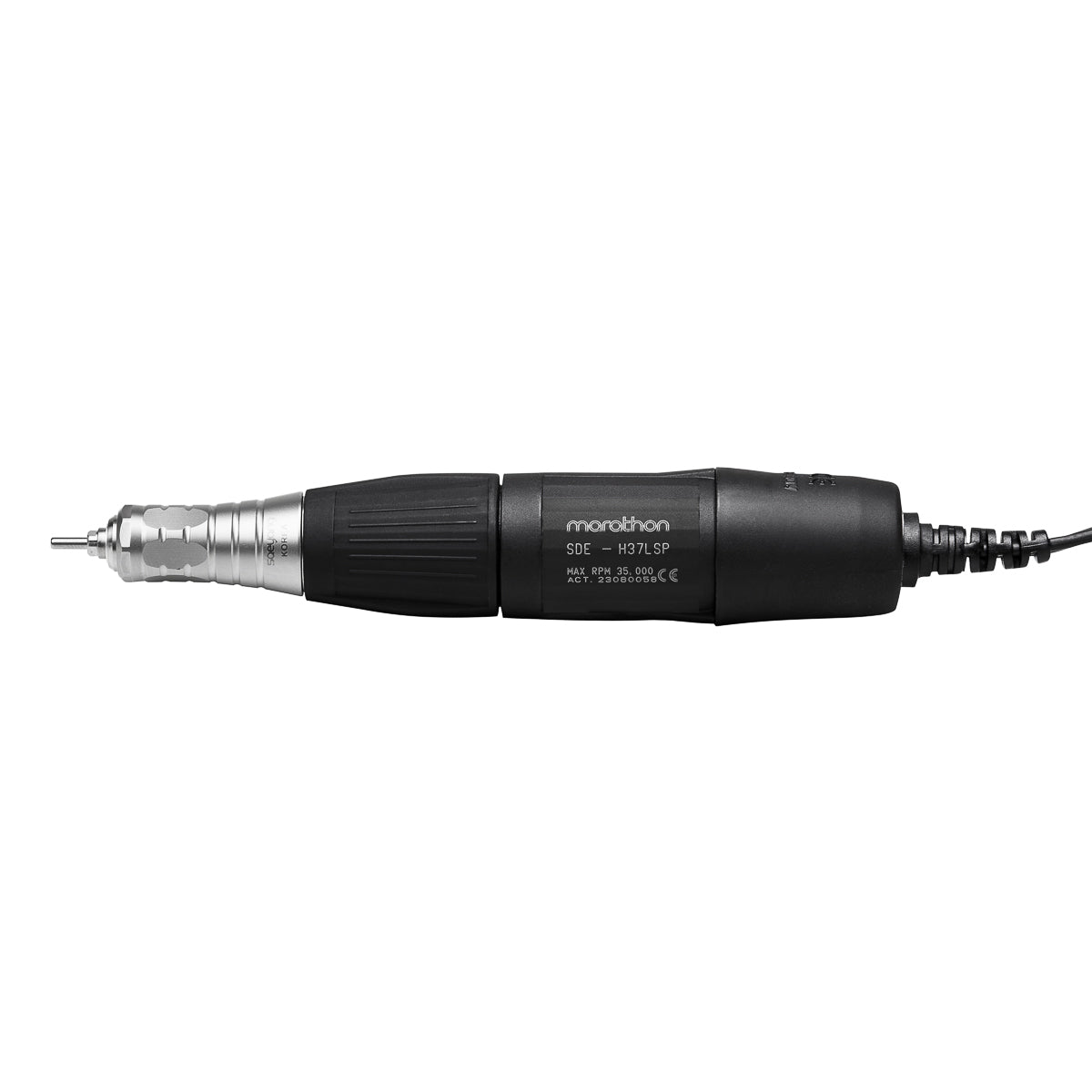 Das präzise H37LSP Handstück liegt perfekt in der Hand, was hohen Bedienkomfort garantiert. Es erreicht eine maximale Geschwindigkeit von 35.000 Umdrehungen pro Minute, was die Arbeitseffizienz steigert. Das Handstück ist mit einem einfach zu bedienenden Twist-Lock-System ausgestattet, das einen schnellen und reibungslosen Bohrerwechsel ermöglicht. Das Element ist richtig ausbalanciert und ergonomisch geformt, zudem wurden die Vibrationen des Handstücks reduziert, sodass auch viele Stunden Arbeit mit dem Nagelfräser die Hand nicht übermäßig ermüden. Das Kunststoffgehäuse begrenzt die Wärmeübertragung, sodass die Erwärmung des Geräts nicht spürbar ist. Das flexible Spiralkabel sorgt für hohen Arbeitskomfort und erreicht bei starker Dehnung eine Länge von bis zu 135 cm.