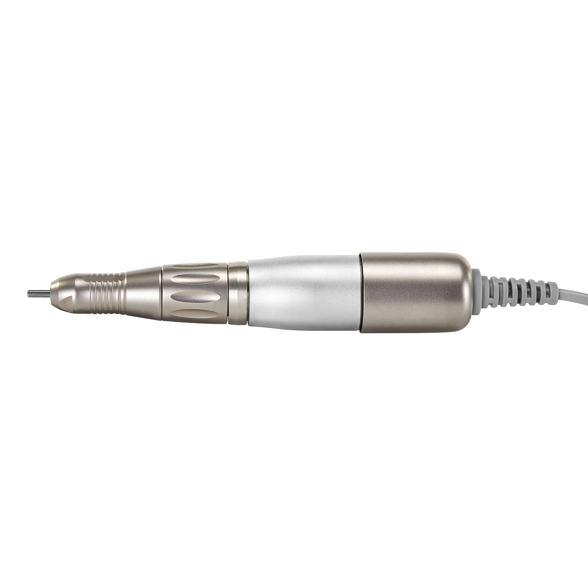 Der schlanke Kopf liegt gut in der Hand und ermöglicht komfortables, präzises Arbeiten. Dank des ausgewogenen Gewichts und der deutlichen Vibrationsreduzierung ermüdet die Hand nicht übermäßig, sodass auch viele Stunden Behandlung möglich sind. Er ist mit einem einfach zu bedienenden Twist-Lock-System ausgestattet, das einen schnellen und einfachen Wechsel der Fräsaufsätze erlaubt. Die Arbeit mit dem Gerät ist daher außerordentlich einfach und intuitiv, was auch anspruchsvollere Anwender zu schätzen wissen.