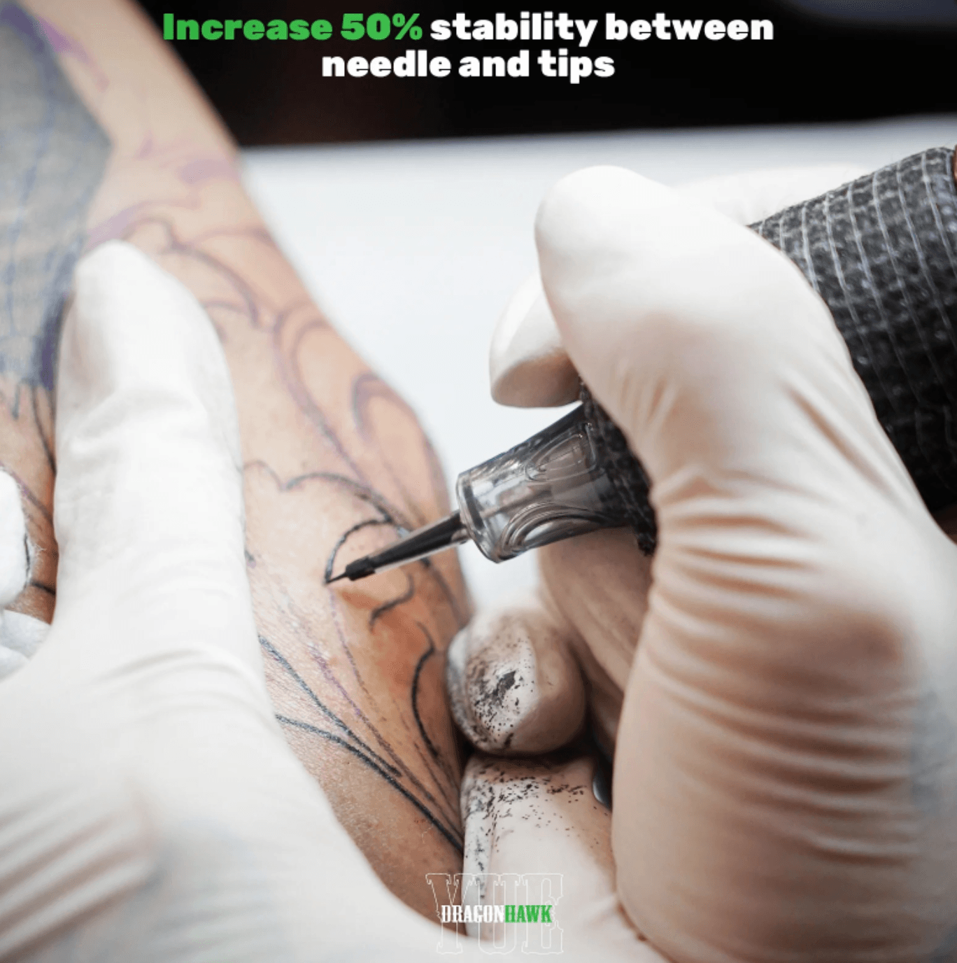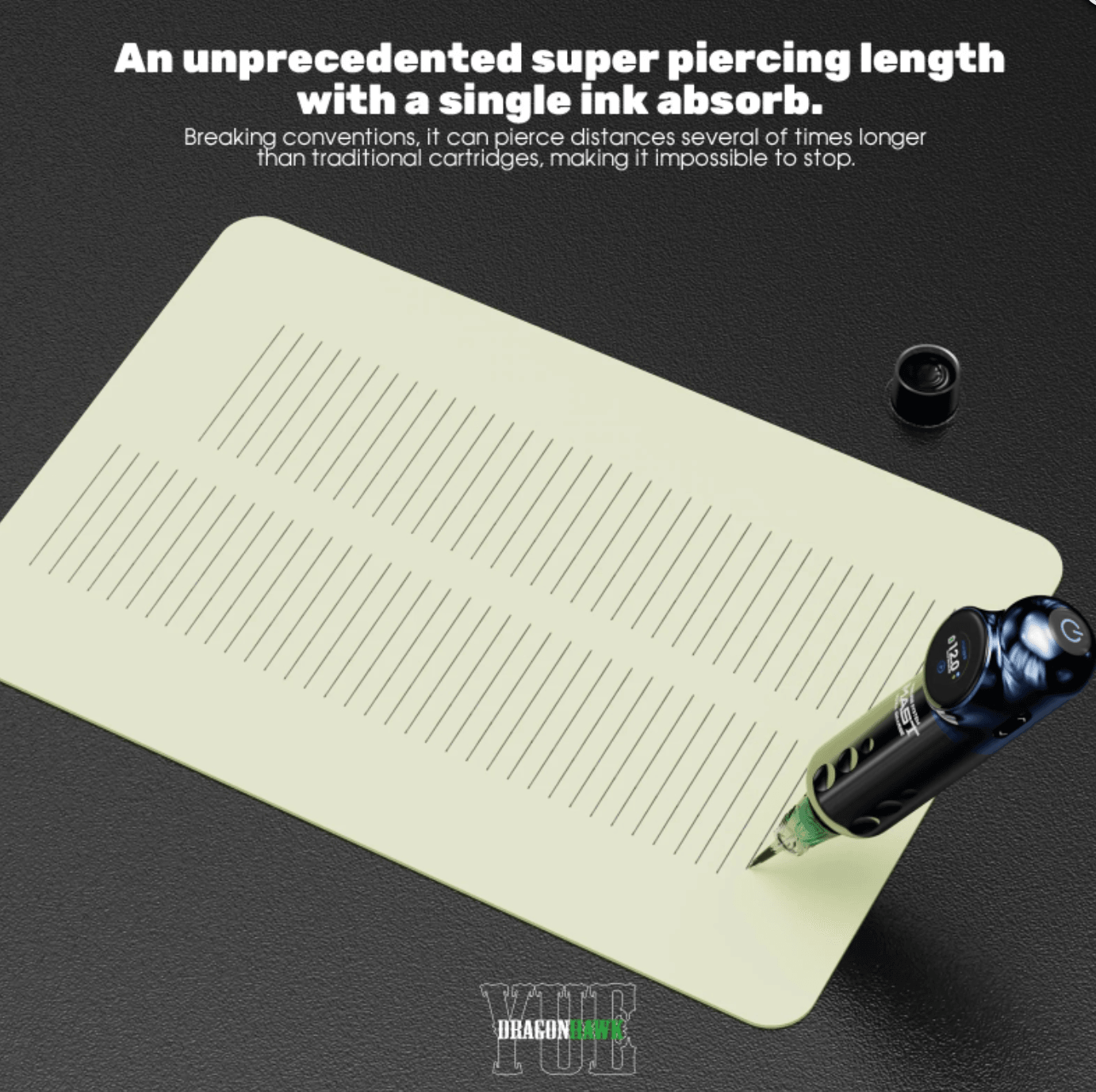- Beispiellose Einstichtiefe: Die Dragonhawk YUE Kartuschen durchbrechen traditionelle Grenzen und bieten eine beispiellose Einstichtiefe mit einer einzigen Tintenaufnahme. Diese Innovation ermöglicht längere Tätowierabstände ohne Unterbrechung und fördert die Effizienz in Ihrem Arbeitsablauf.