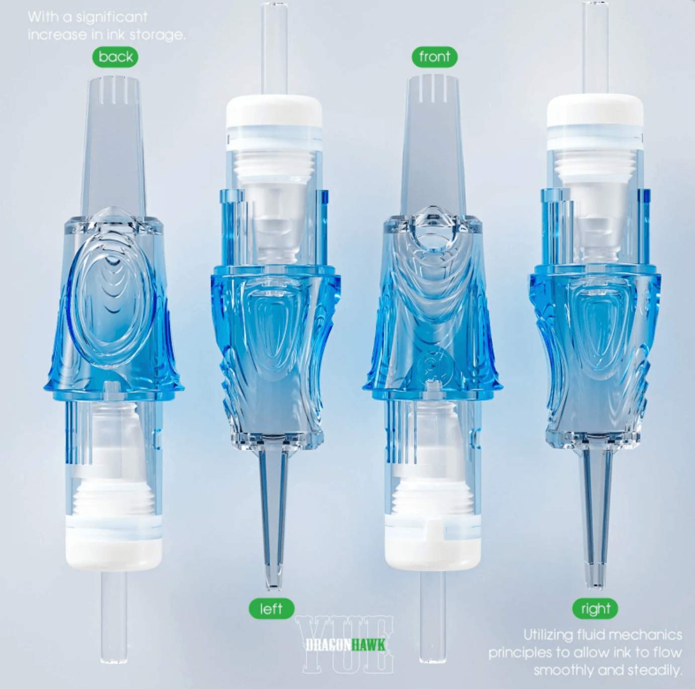 MAST Dragonhawk Yue Tattoo und PMU Kartuschen, wo Eleganz auf Innovation trifft. Diese Kartuschen sind sorgfältig gefertigt, um überlegene Leistung mit einer künstlerischen Ästhetik zu verbinden und Tätowierern außergewöhnliche Präzision, Komfort und Effizienz zu bieten.