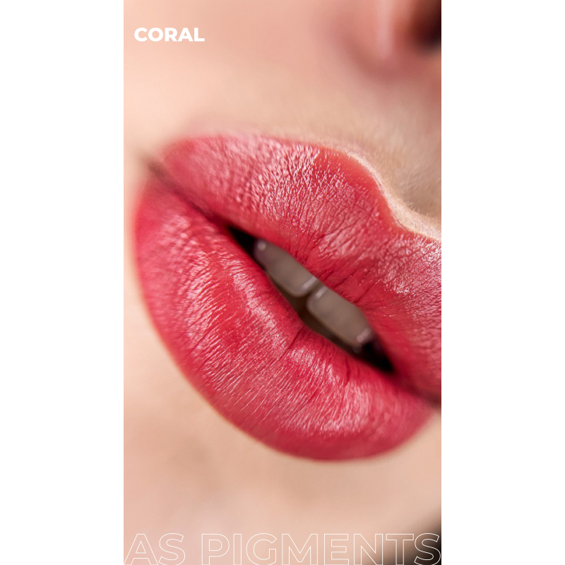 Leuchtend pink-orange Konzentrat. Perfekt für Frauen mit dunklem Haar, grünen Augen oder Sommersprossen. Mischbar mit jedem Lippenpigment außer Juicy Peach.