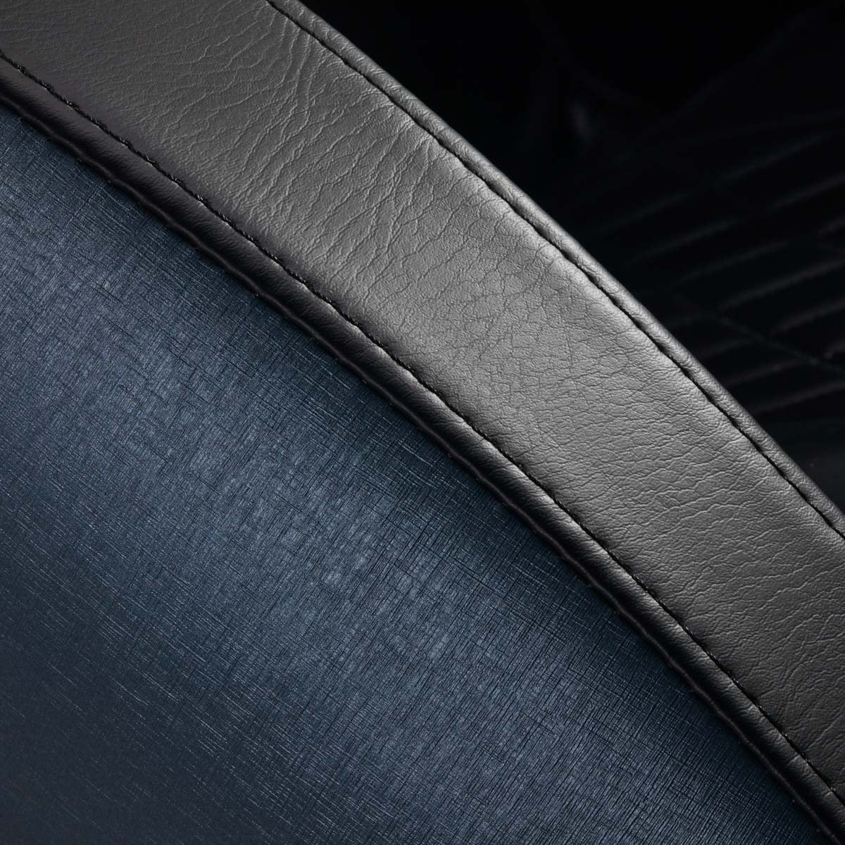 Der komfortable Massagesessel ist mit angenehmem Kunstleder in Schwarztönen bezogen. Die Verwendung dieses Materials macht ihn hochfeuchtigkeitsbeständig und leicht zu reinigen. Die Kombination aus strukturierten Materialien in Beige- und Blautönen an den äußeren Teilen des Sessels lässt das Produkt gleichzeitig äußerst originell und elegant wirken. Sorgfältig gearbeitete Nähte verleihen ihm ein stilvolles Aussehen, und die solide Konstruktion garantiert eine lange Nutzung. Ein kompaktes Modell mit ästhetischer Verarbeitung und klassischen Farben passt perfekt in jedes Interieur. Der Sakura 305 Massagesessel ist eine großartige Möglichkeit, sich jederzeit zu entspannen, besonders nach einem anstrengenden Tag oder einem harten Training.