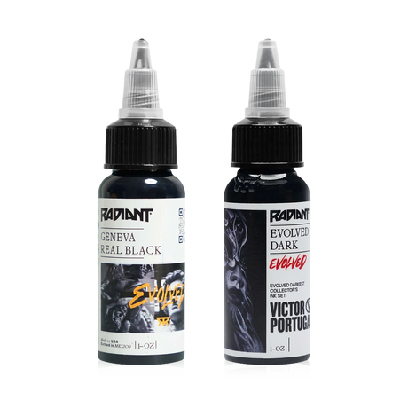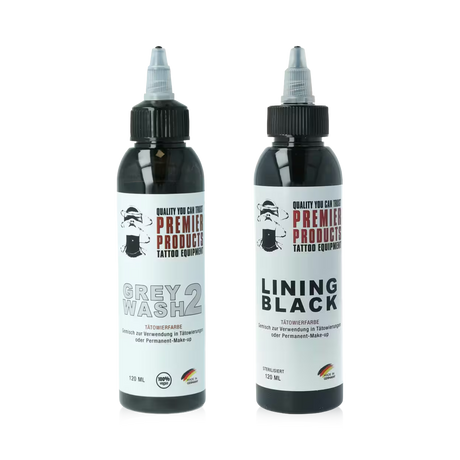 - Eclipse Black Tattoo Ink (150 ml/260 ml): Eclipse ist für sein tiefes, sattes Schwarz und die gleichmäßige Anwendung bekannt und eignet sich ideal zum Konturieren und Schattieren.