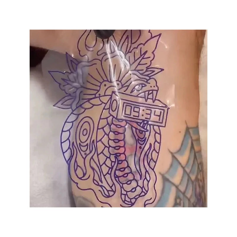 Dieses innovative transparente Schablonenpapier ist besonders wertvoll für Cover-ups, das Verblenden neuer Designs in bestehende Tattoos und das Arbeiten in engen oder komplexen Bereichen. Die durchsichtige Folie ermöglicht es Ihnen, Ihre Schablone mit Zuversicht zu positionieren, sodass Ihr neues Kunstwerk beim ersten Versuch nahtlos zum vorherigen passt.