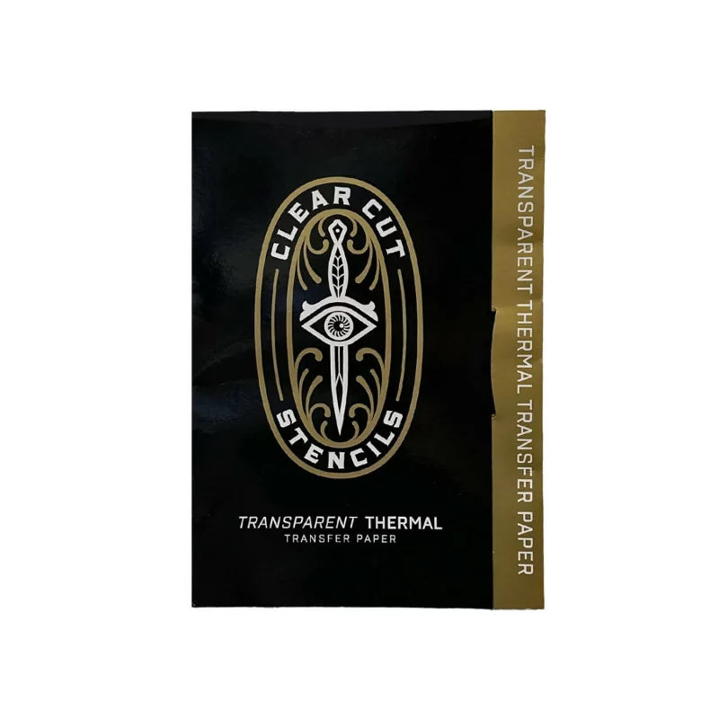 Clear Cut Transparentes Thermotransferpapier ist ein bahnbrechendes Werkzeug für Tätowierer, die unvergleichliche Präzision bei der Schablonenplatzierung suchen. Im Gegensatz zu herkömmlichem Schablonenpapier verwendet Clear Cut eine transparente Folie, die genau wie eine Standard-Schablone funktioniert, Ihnen aber erlaubt, durch das Blatt hindurchzusehen, um eine perfekte Ausrichtung zu gewährleisten. Die Standard-A4-Größe (21cm x 29,7cm / 8,3" x 11,7") sorgt für Kompatibilität mit den meisten Kopierern und Thermodruckern auf dem Markt.
