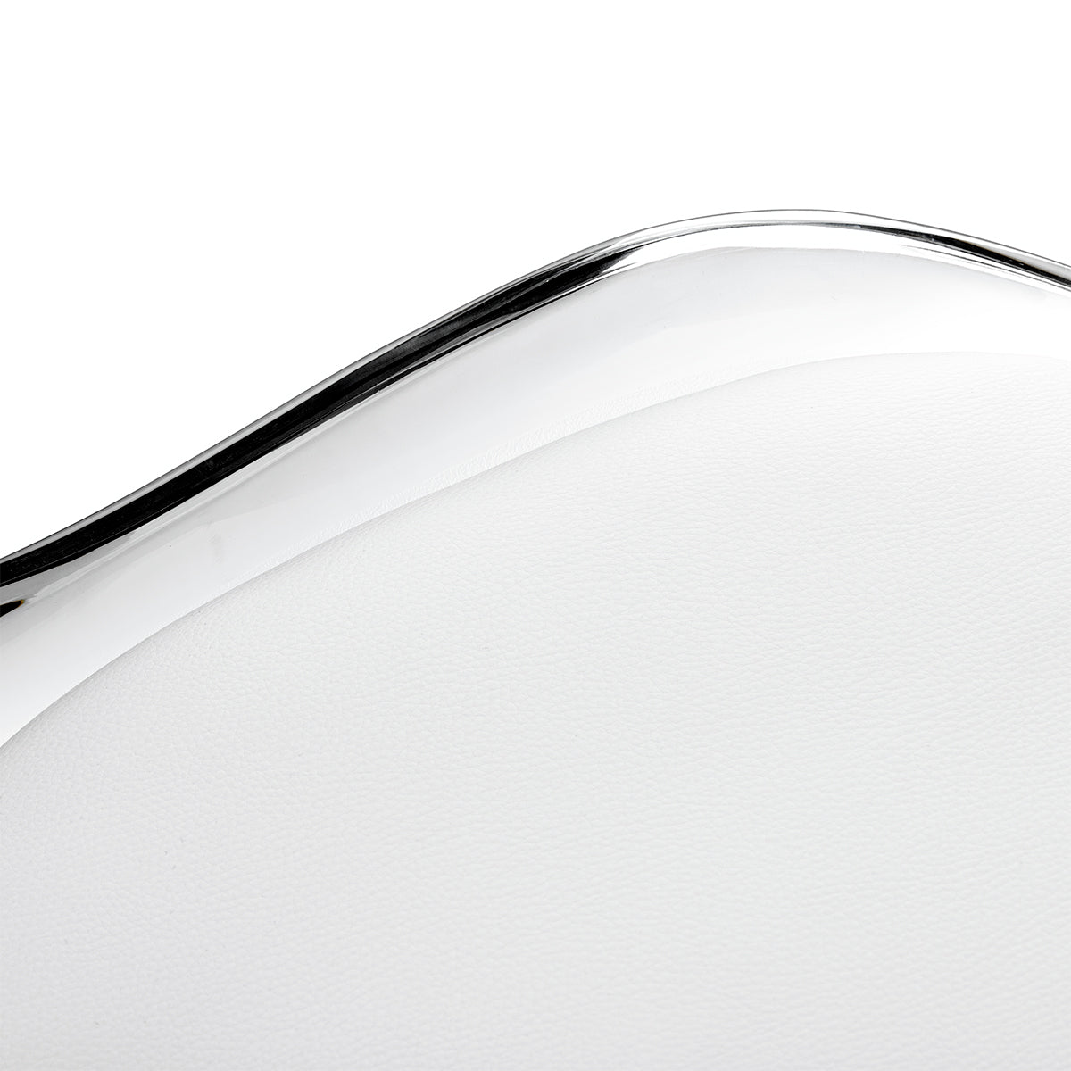 Das Modell fällt durch seine auffällige, transparente Rückenlehne ins Auge und verleiht dem Ganzen einen leichten und modernen Charakter. Die Kombination der transparenten Struktur mit dem Sitzpolster aus weißem Kunstleder und der weißen Basis schafft einen raffinierten Kontrast, der Eleganz betont. Dadurch ist der Stuhl nicht nur ein funktionales Möbelstück, sondern auch eine stilvolle Dekoration für das Büro. Er fügt sich perfekt in jedes Interieur ein und passt hervorragend zur Ästhetik moderner Schönheitssalons.