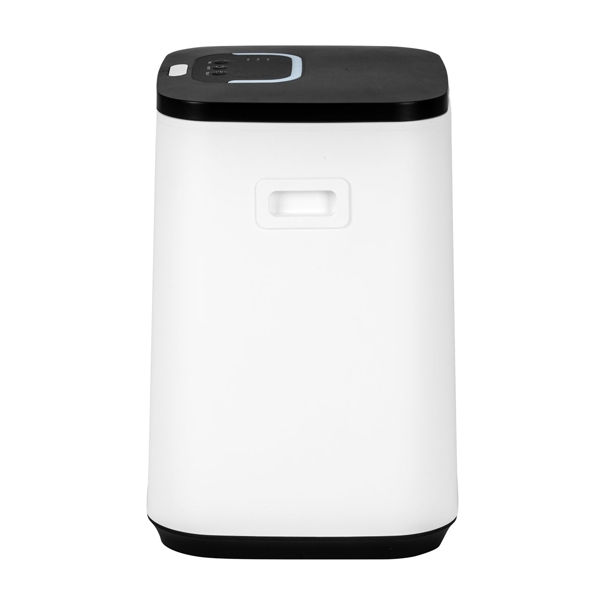 Das Gehäuse des Heizgeräts besteht aus mattem weißem Kunststoff mit einem schwarzen Deckel und ist robust und leicht zu reinigen. Das freistehende Design mit Griffen an den Seiten macht das Gerät einfach zu tragen und zu verstauen.