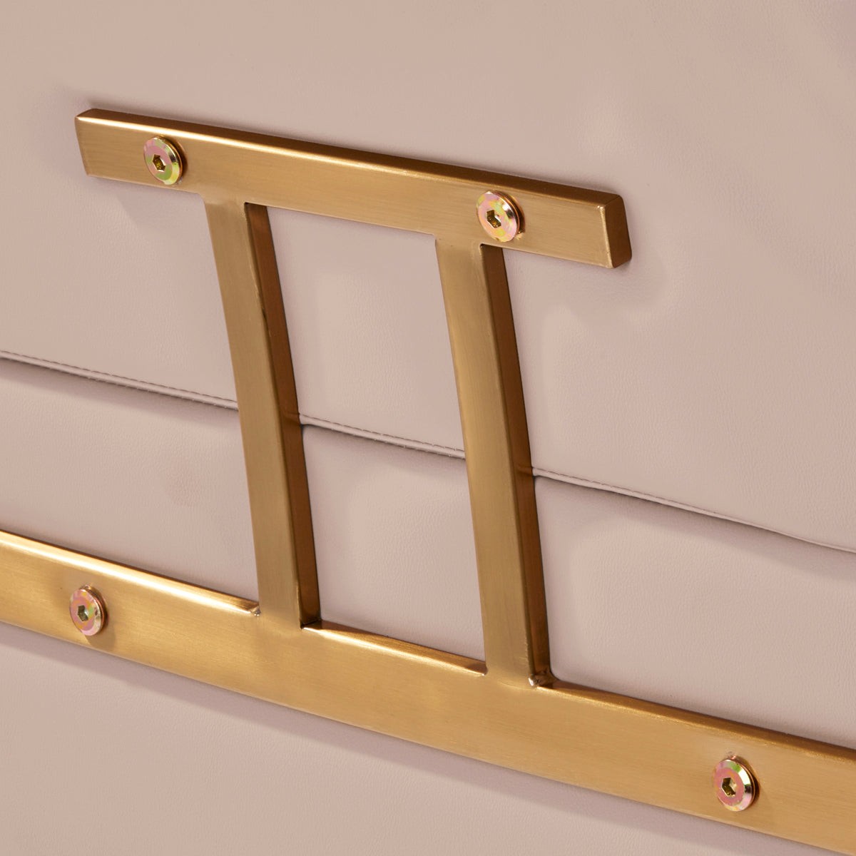Die Füllung aus langlebigem, formbeständigem Schaumstoff und die Polsterung aus angenehm zu berührendem Kunstleder garantieren die Langlebigkeit der Möbel und deren komfortable Nutzung über lange Zeit. Sie machen die Ausstattung zudem feuchtigkeitsbeständig, robust und leicht zu reinigen. Die beige Bezugsfarbe verleiht ihr einen einzigartigen Charakter. Die Ausstattung zeichnet sich durch ein modernes Design aus, das den Sessel in vielen professionellen Salons großartig aussehen lässt.