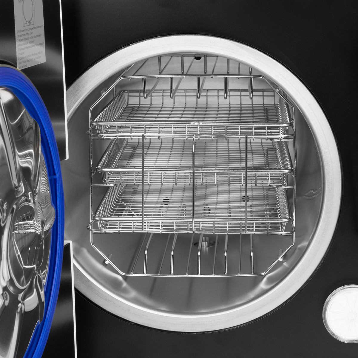 | Kapazität 23 L | Große Kapazität ermöglicht die Sterilisation von mehr Werkzeugen und Gegenständen. Perfekt für Zahnarztpraxen, Universitätsanlagen, Krankenhausstationen oder Privatkliniken. |