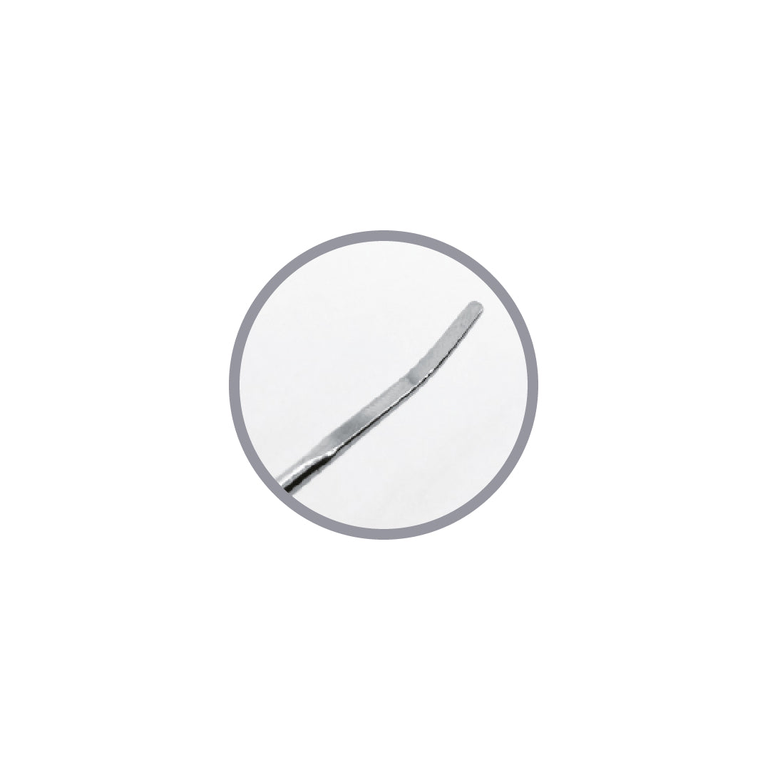 Der Applikator besteht aus hochwertigem Edelstahl. Das Werkzeug hat abgerundete Spitzen und einen äußerst komfortablen Griff. Der Applikator kann im Autoklaven sterilisiert werden.