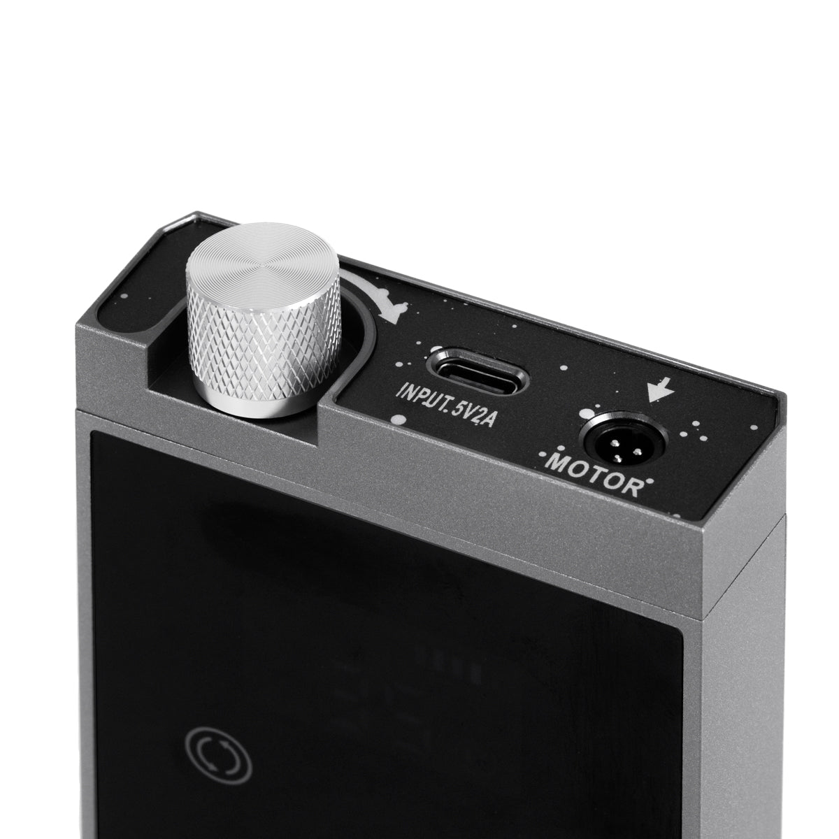 Der am oberen Teil des Geräts befindliche Knopf ermöglicht eine stufenlose Einstellung der Kopfgeschwindigkeit bis zu 35 000 Umdrehungen pro Minute, was eine optimale Anpassung an individuelle Bedürfnisse und eine komfortable Durchführung verschiedener Behandlungen erlaubt. Das Touch-Panel ermöglicht ein einfaches Anhalten des Geräts (Pause-Funktion) sowie das Ändern der Drehrichtung, was volle Kontrolle über die Nagelfräse bietet und die Anpassung des Betriebs an spezifische Dienstleistungen erleichtert. Der klare Bildschirm zeigt den Status des Geräts an – er informiert über Geschwindigkeit und Drehrichtung, Batteriestatus und Aktivierung der Pause.