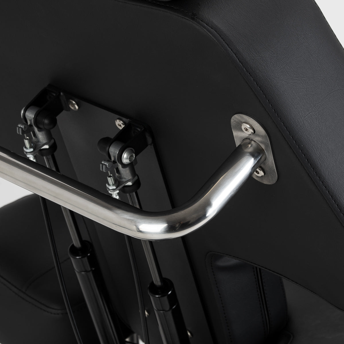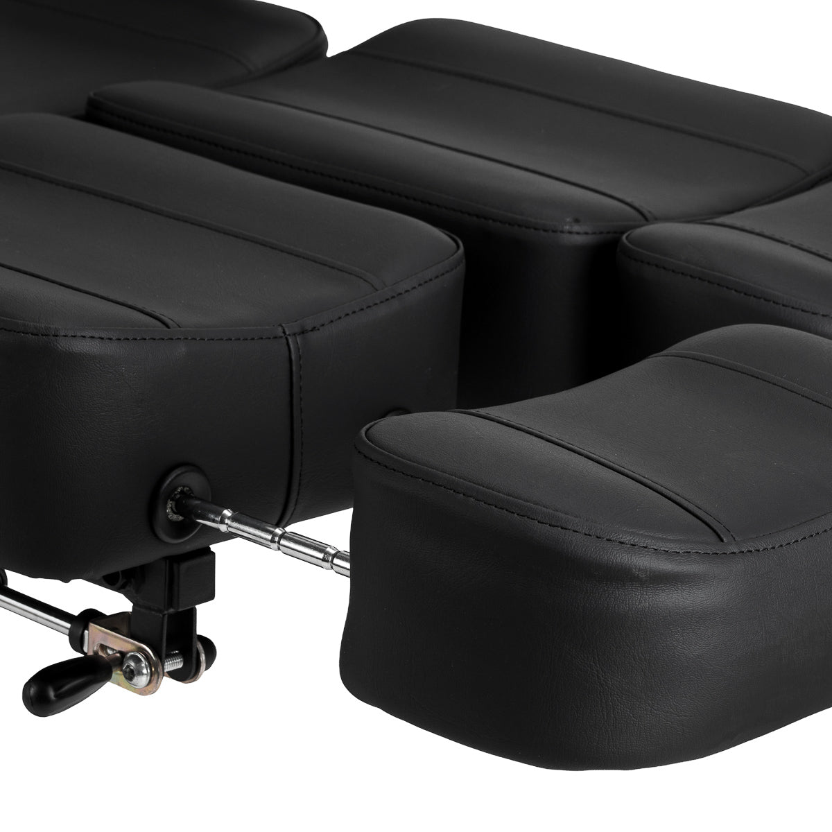 Die Sitzhöhe ist mittels hydraulischem Hub im Bereich von 60-78 cm verstellbar, während der Stuhl bei voller Ausdehnung eine Länge von bis zu 200 Zentimetern erreicht. Die manuelle Verstellung der Rückenlehnen- und Fußstützenwinkel ermöglicht die Anpassung der Position an die jeweilige Behandlung. Die geteilte Fußstütze mit unabhängiger Segmentverstellung und seitlicher Einstellung erlaubt eine individuelle Beinpositionierung, was die Bewegungsfreiheit und den Komfort des Kunden erhöht. Der ausziehbare Teil der Fußstütze bietet auch für größere Personen einen stabilen Halt. Abnehmbare Armlehnen mit Höhen- und Winkelverstellung erhöhen die Anzahl der möglichen Einstellungen und erleichtern die Anpassung des Stuhls an aktuelle Bedürfnisse. Das Ganze ergibt eine ergonomische und funktionale Lösung, die perfekt auf die Arbeitsrealität in einem professionellen Tattoostudio abgestimmt ist.