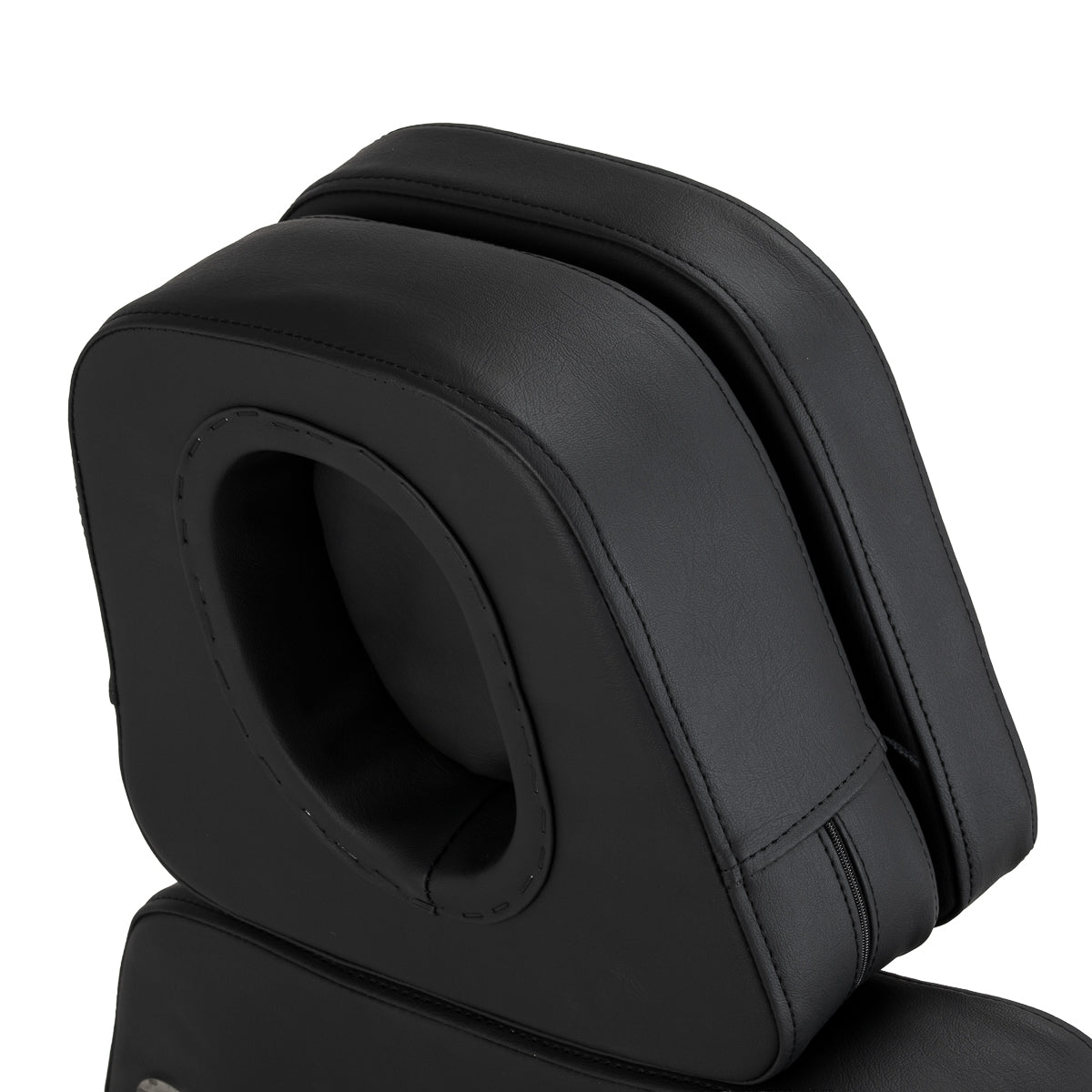 Der Vollschwenkmechanismus mit Verriegelungsfunktion bietet außergewöhnliche Funktionalität, erleichtert den Zugang zum Kunden von allen Seiten und verbessert die Arbeit auch in beengten Räumen. Das Design des Stuhls ermöglicht das Zurücklehnen in eine bequeme Position, und die Öffnung in der Kopfstütze, verborgen unter dem Polster, sorgt für angemessene Unterstützung und Komfort bei Behandlungen in verschiedenen Positionen. Ein zusätzlicher Komfort ist die Beinauflage, die ein bequemes Überschreiten erlaubt, und ihre Verlängerungsverstellung ermöglicht die Anpassung an die Bedürfnisse von Nutzern unterschiedlicher Körpergrößen.