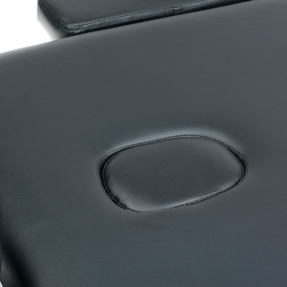 Die Tischoberfläche besteht aus hochwertigem Kunstleder, das nicht nur angenehm anzufassen ist, sondern auch leicht zu reinigen ist. Dieses Leder ist resistent gegen Öle und andere während der Massage verwendete Präparate, was die Haltbarkeit und Ästhetik des Tisches zusätzlich erhöht.