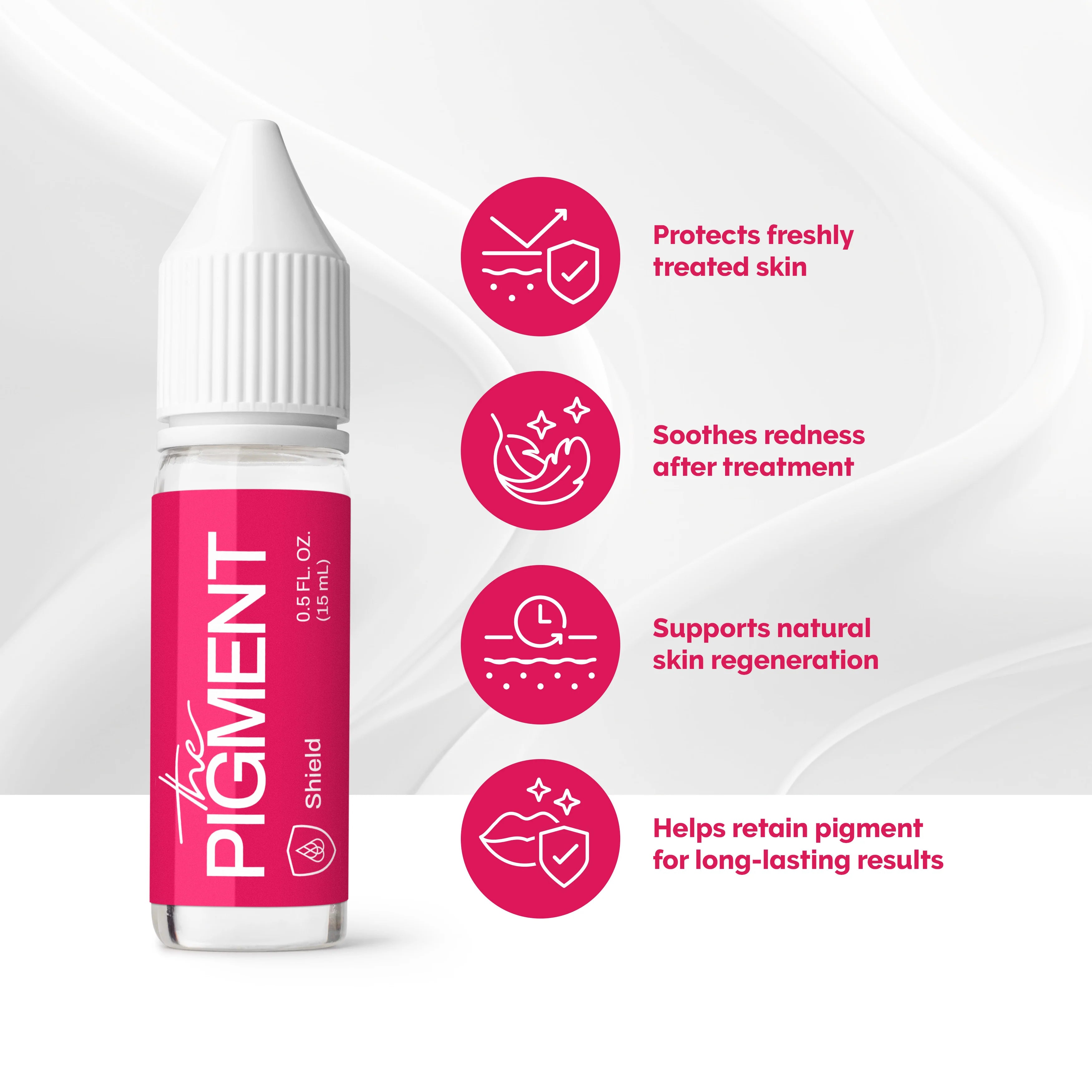 The Pigment Shield 15ml ist speziell für die Nachsorge nach PMU- und Microblading-Behandlungen formuliert. Seine reichhaltige, transparente Textur bildet einen Schutzfilm über dem behandelten Bereich und bewahrt das frisch implantierte Pigment. Die Formel hilft zudem, Rötungen zu beruhigen und unterstützt den natürlichen Regenerationsprozess der Haut.