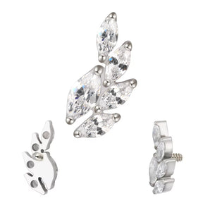 Piercing-Zubehör aus implantatgeeignetem Titan mit elegantem, vom Steinschmätzer inspiriertem Marquise-Kristalldesign, entwickelt für Präzision, Komfort und professionelles Bodypiercing.